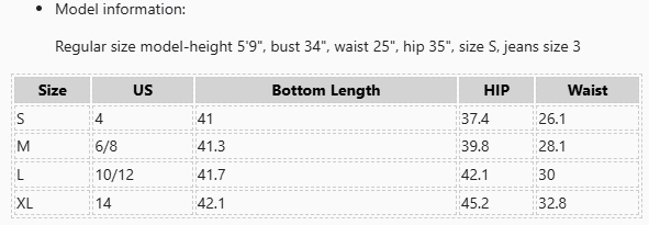 SIZE CHART