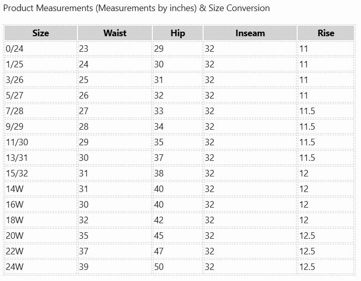 SIZE CHART