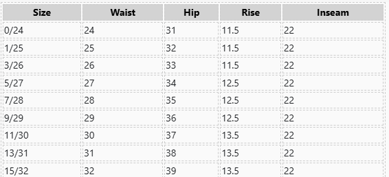 Product Measurements (Measurements by inches) & Size Conversion