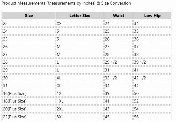 SIZE CHART