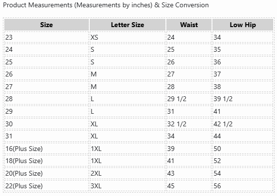 SIZE CHART