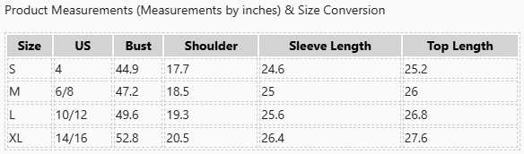 SIZE CHART